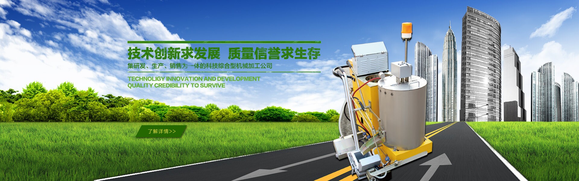 公司自成立以來(lái),秉持市場(chǎng)需求為導(dǎo)向,技術(shù)創(chuàng)新為基礎(chǔ),質(zhì)量信譽(yù)為主的原則,成功開(kāi)發(fā)出標(biāo)線施工機(jī)械、融雪劑撒布機(jī)、道路清掃機(jī)等一系列全新的作業(yè)機(jī)械并獲得多項(xiàng)國(guó)家專利?!罢\(chéng)信立足,創(chuàng)新致遠(yuǎn)”的企業(yè)理念,分別于2009年、2011年為我公司贏得了“全國(guó)質(zhì)量誠(chéng)信AAA級(jí)品牌企業(yè)”和”全國(guó)十佳誠(chéng)信單位”的光榮稱號(hào)。2013年,我公司在自主研發(fā)創(chuàng)新產(chǎn)品的道路上邁出了重要的一步,被山西省新技術(shù)推廣中心評(píng)定為20 14年新技術(shù)重點(diǎn)推廣單位。
